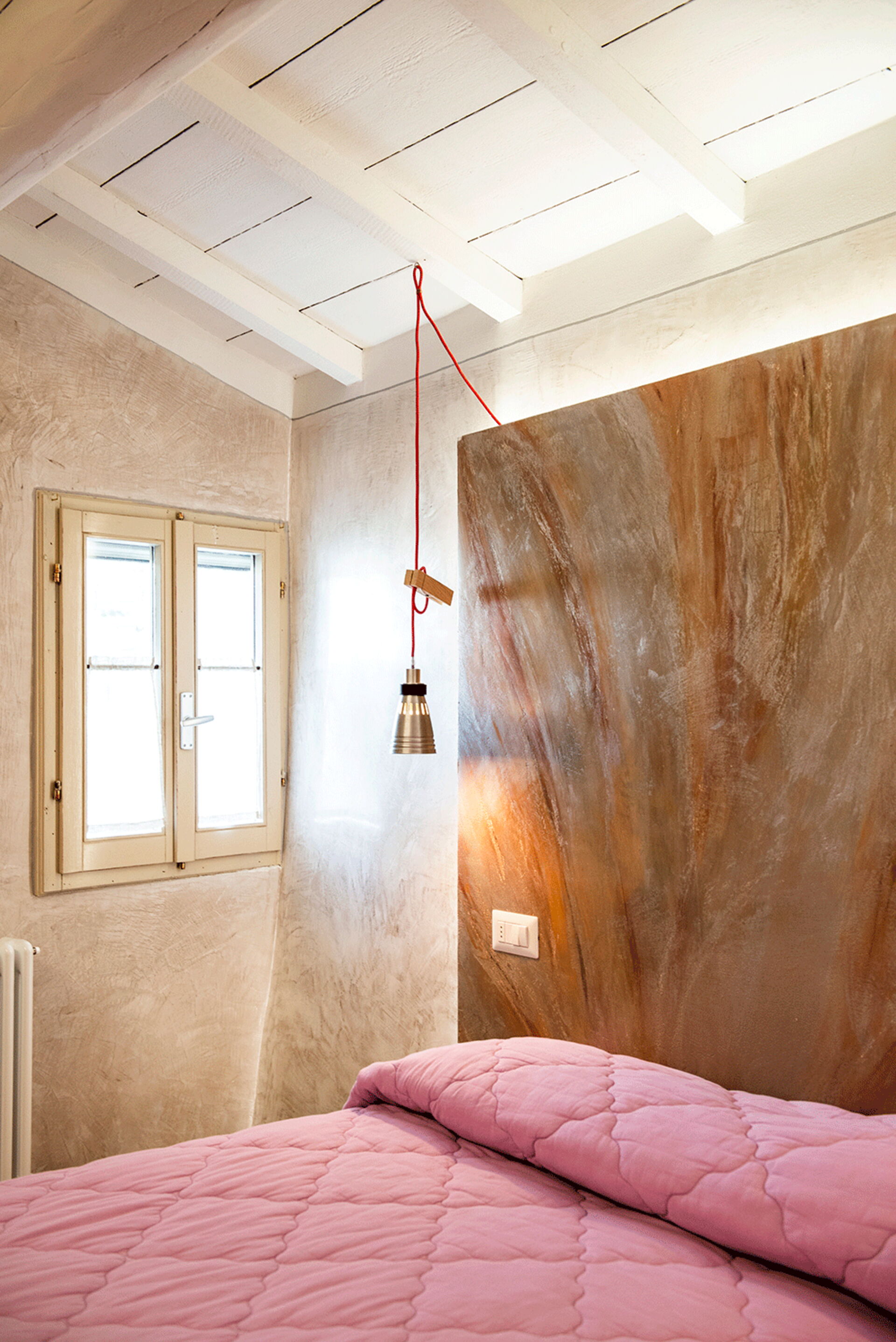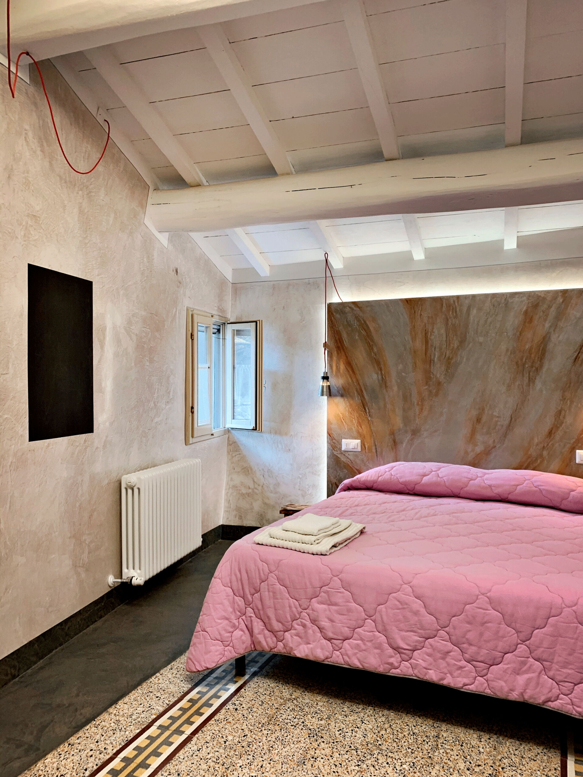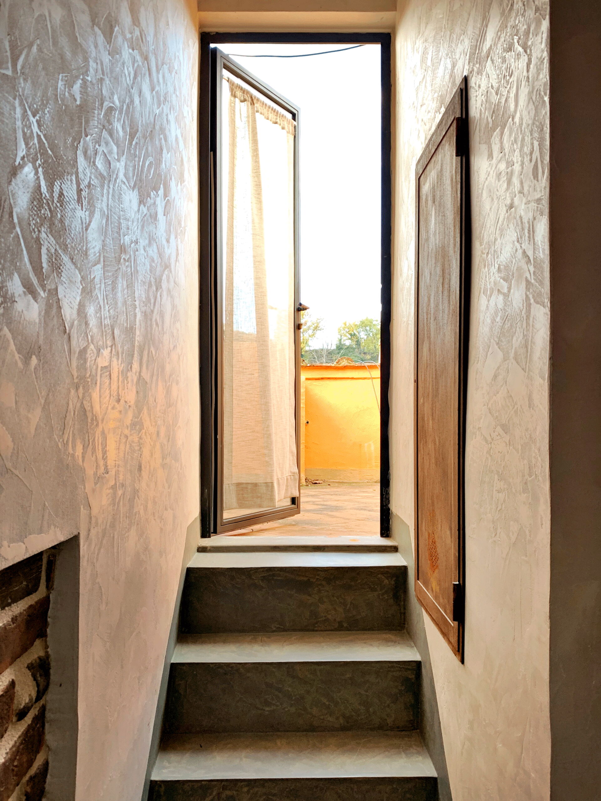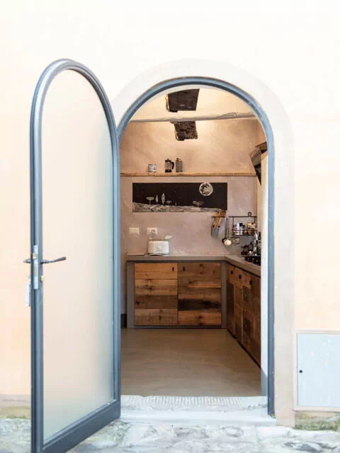 A staircase leads to the upper floor, where the master bedroom overlooking the village. Continuing a few steps leads to the romantic little terrace, perfect for enjoying summer evenings.