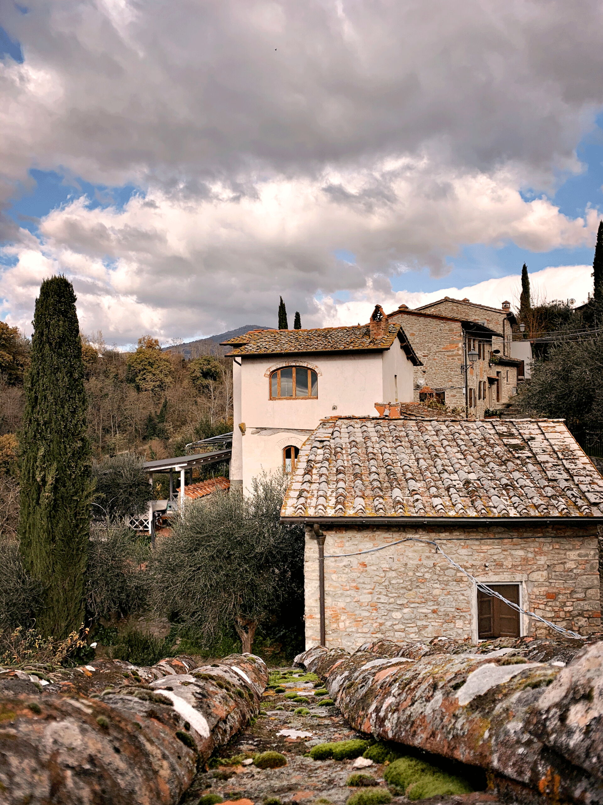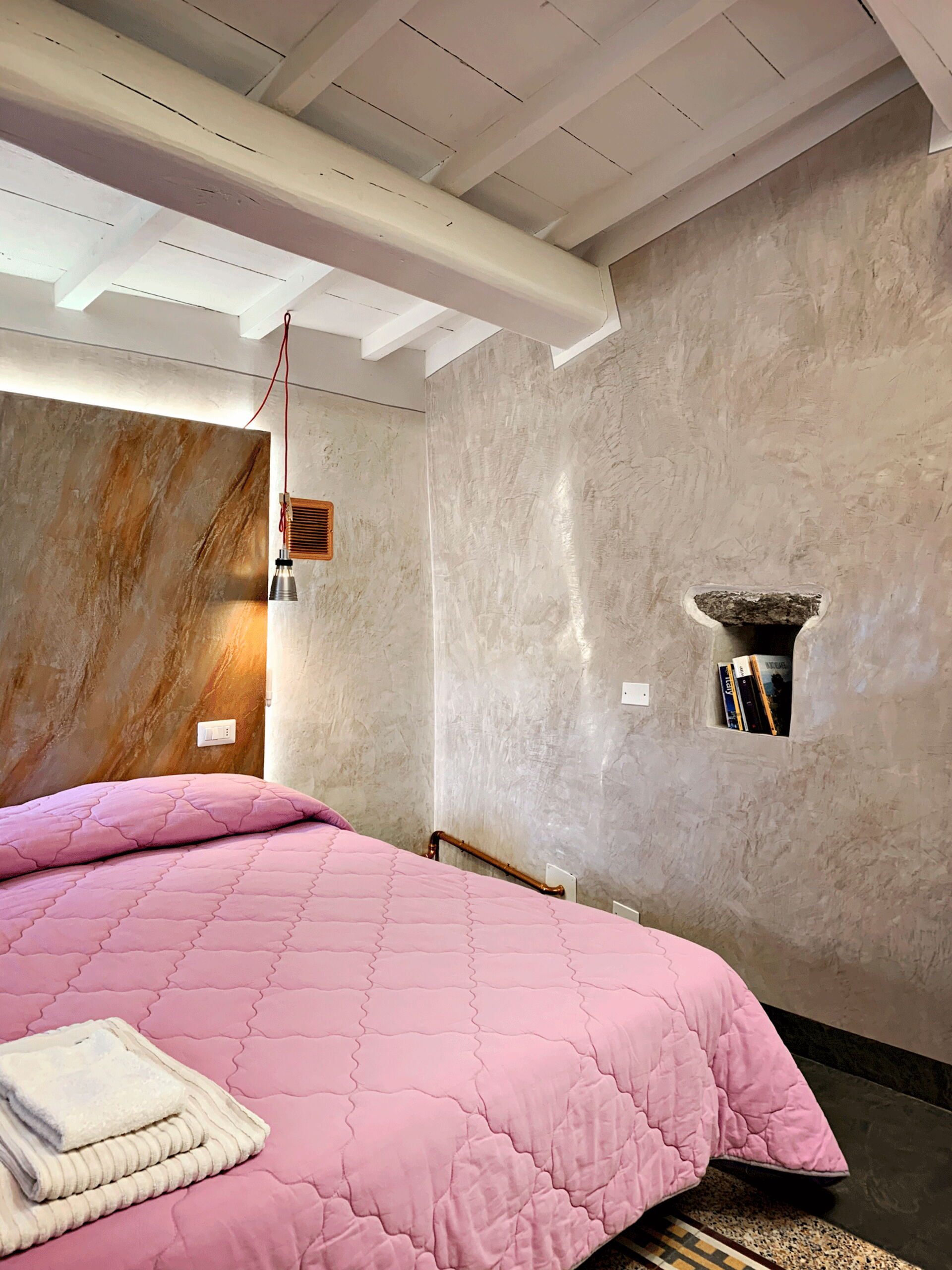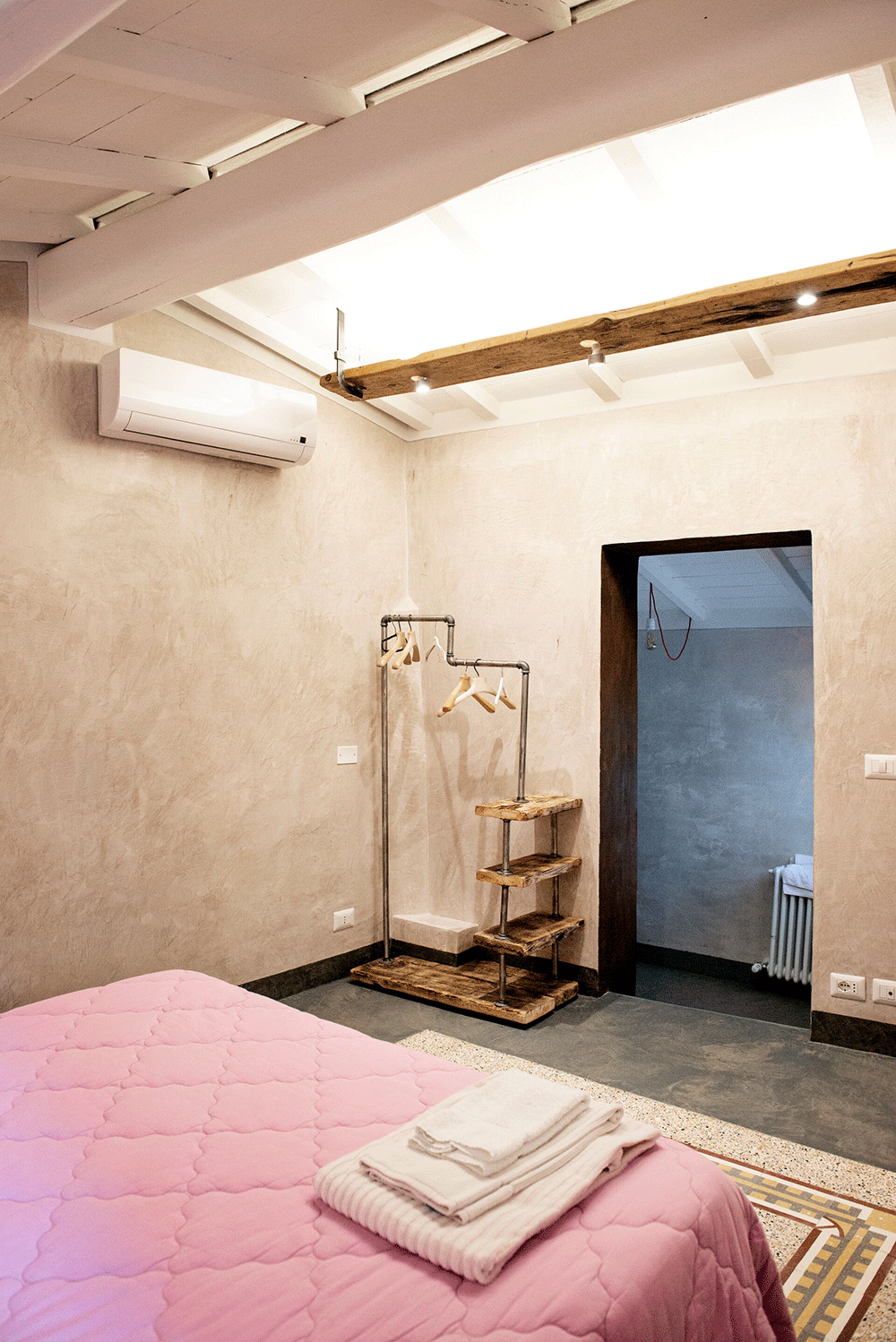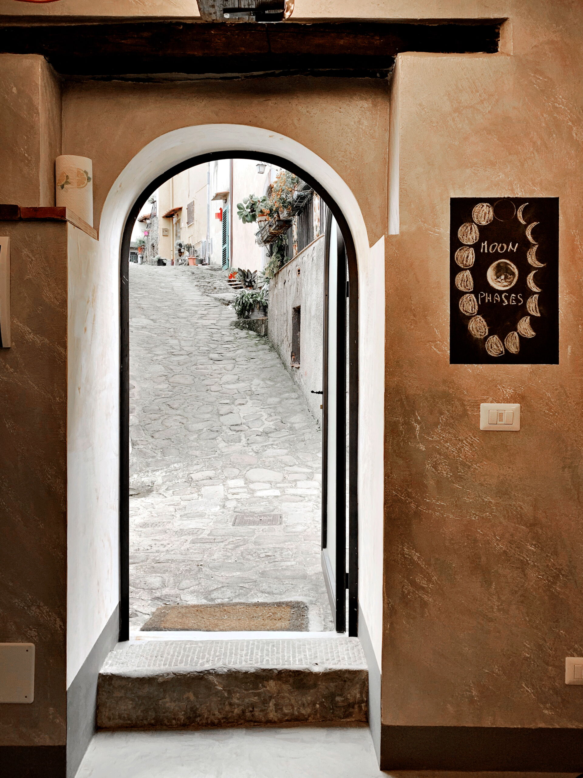 A staircase leads to the upper floor, where the master bedroom overlooking the village. Continuing a few steps leads to the romantic little terrace, perfect for enjoying summer evenings.