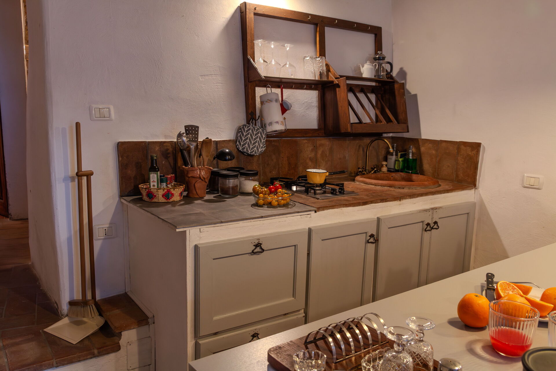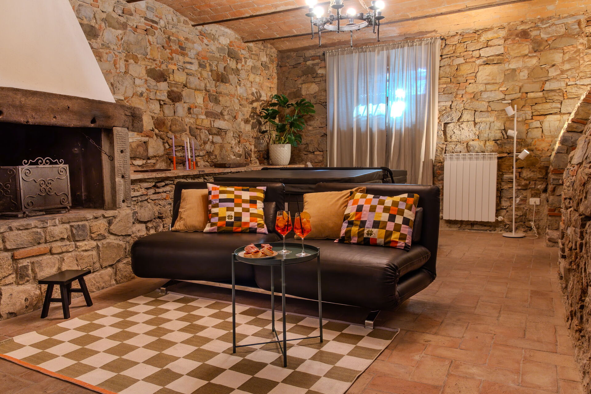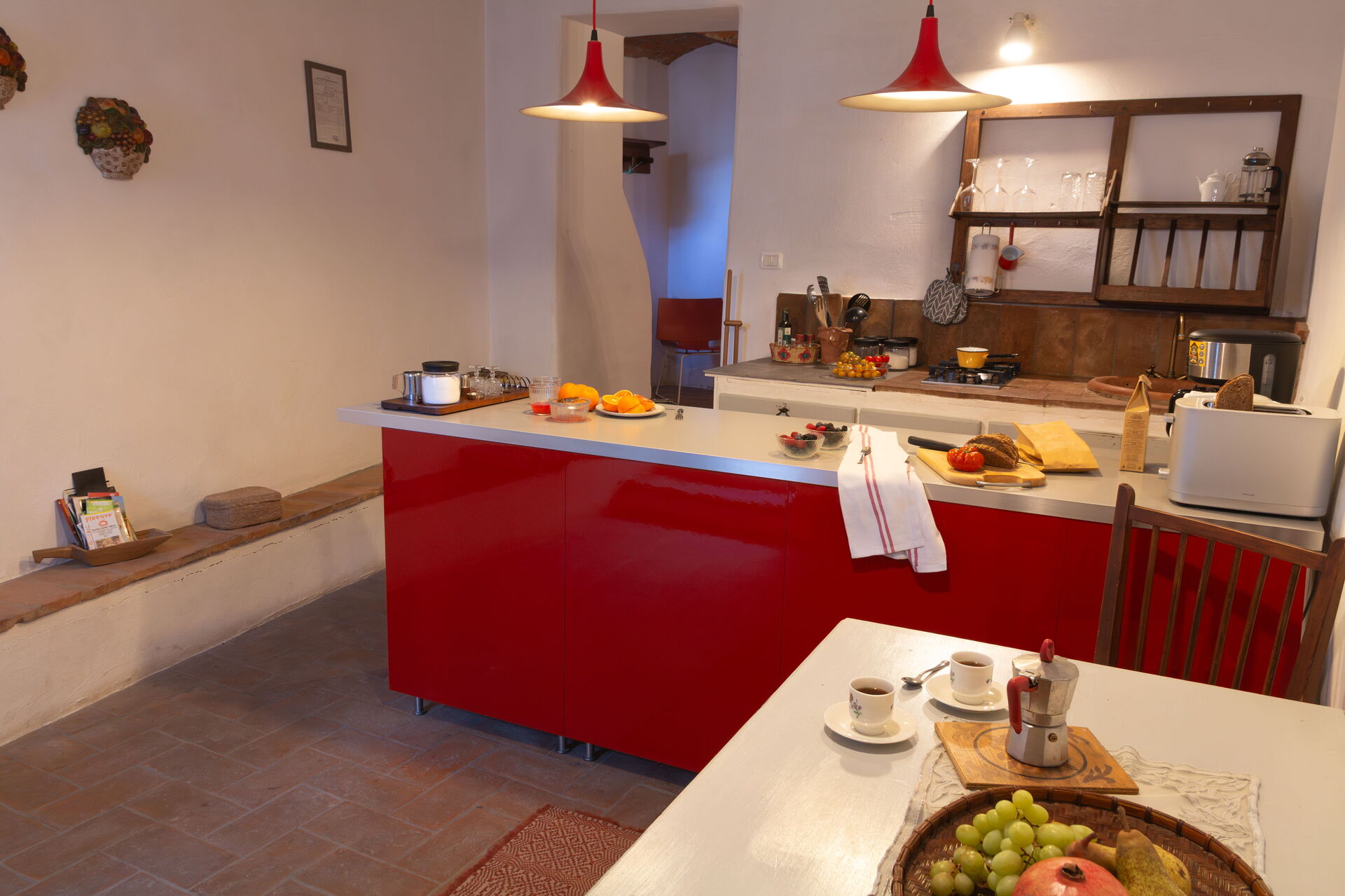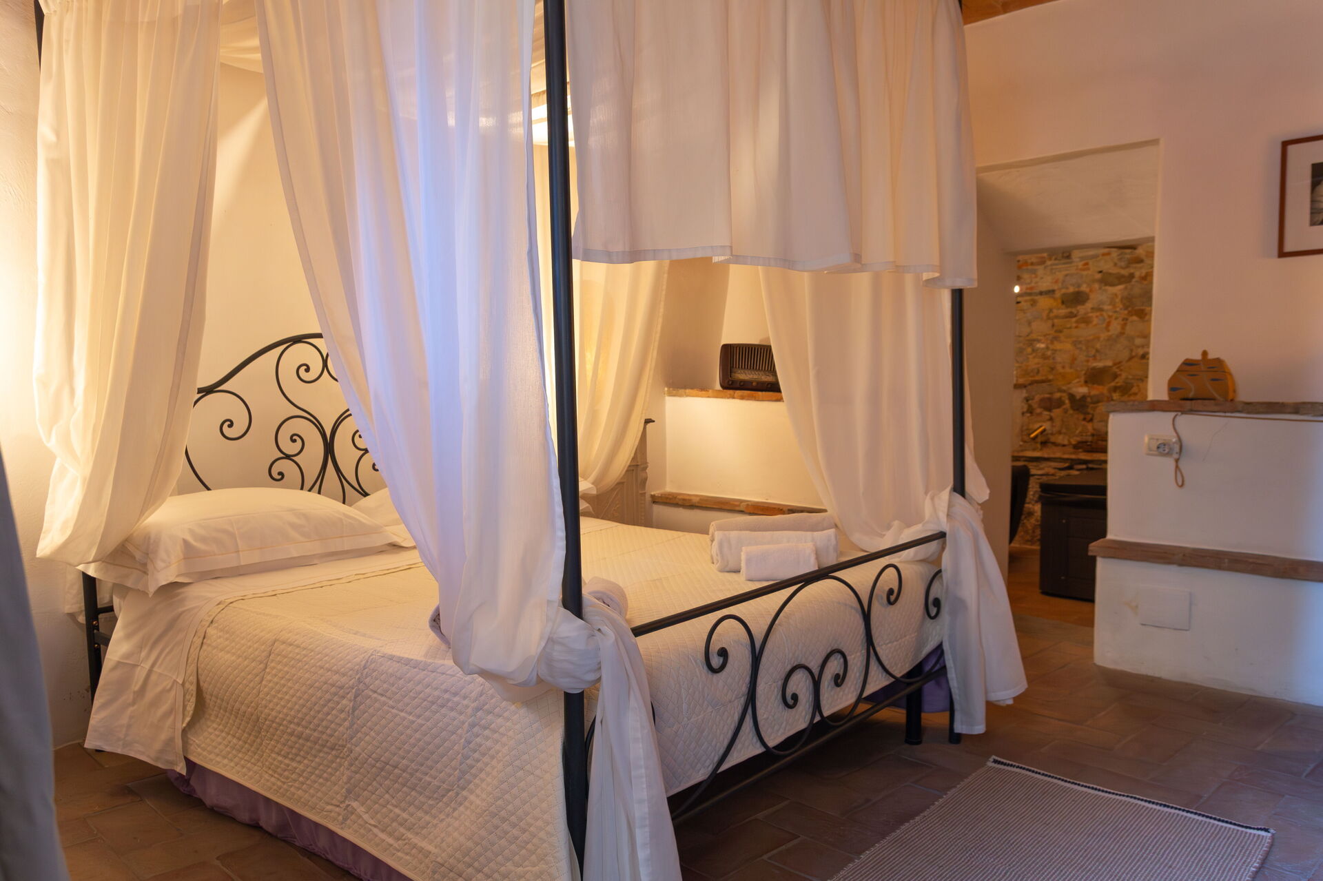 Les murs sont en pierre et le plafond est en "cotto toscano". Les meubles antiques sont en harmonie avec le style de la maison et appartiennent à la famille depuis des générations. L'intention des propriétaires était aussi d'offrir un parfait endroit pour une lune de miel, dans un espace beau et chaleureux où les hôtes peuvent apprécier la vie paisible et romantique d'un petit village toscan.