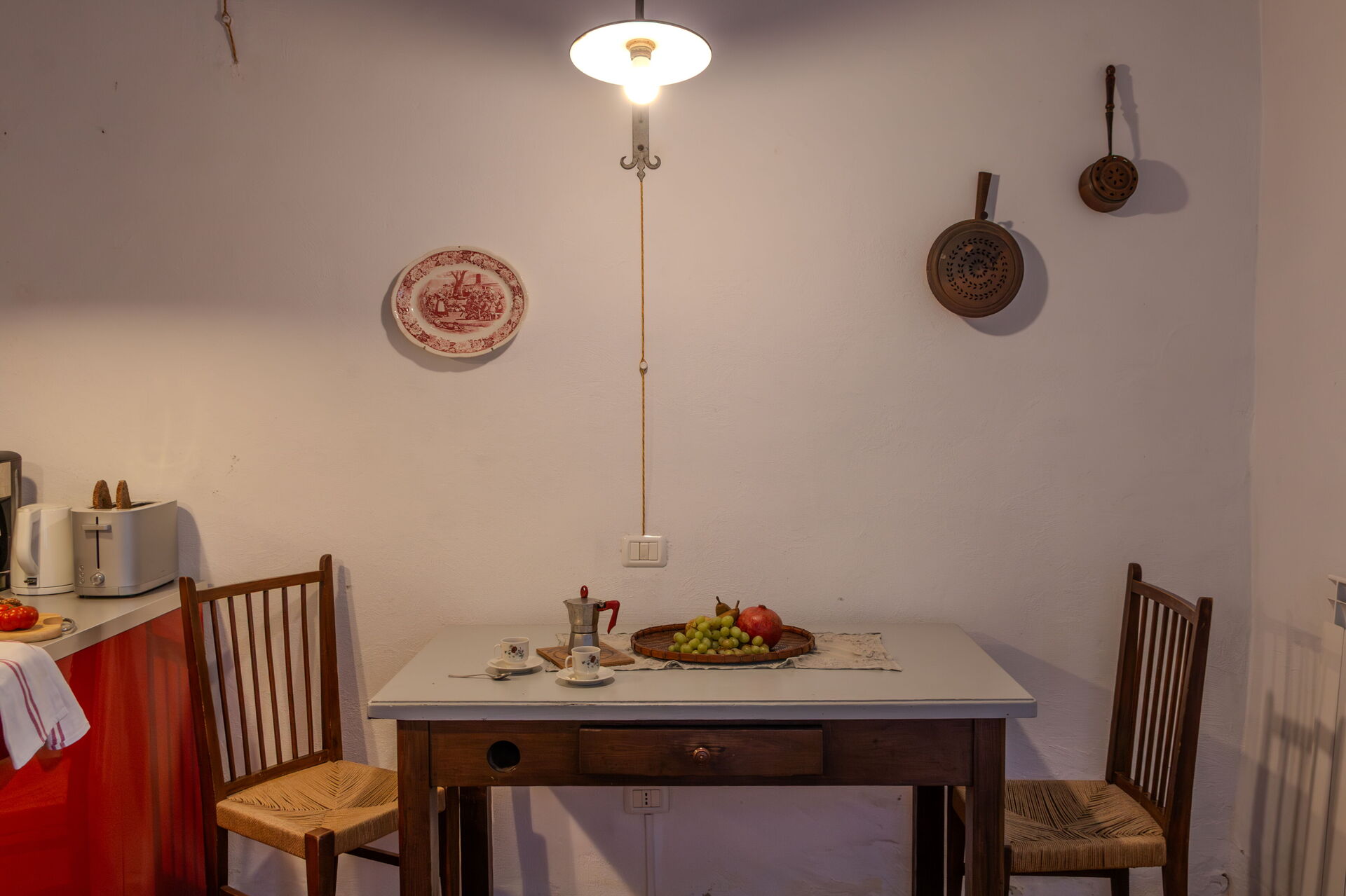 La maison se trouve sur la place centrale du village. La place est une zone piétonne et nous fournissons une petite table qui peut être installée juste devant la porte pour que nos hôtes puissent apprécier un bon verre de vin à la faveur de la brise estivale du soir.