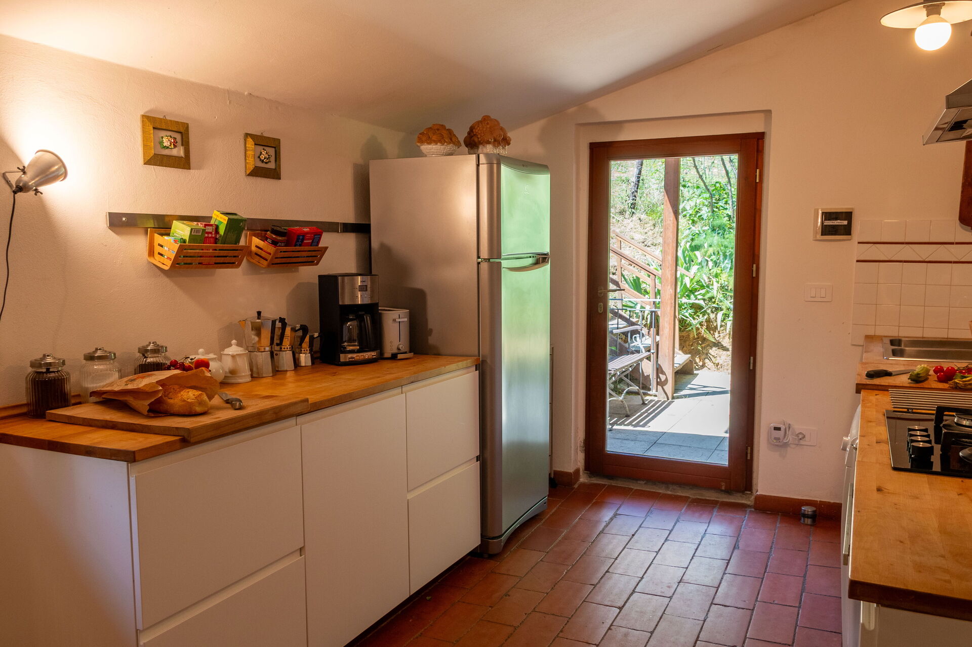 From any of the two doors, you will be enchanted by the size and beauty of this house. The interiors are original with red bricks archways and tall ceilings. Right between the two entrances a large and bright "double" kitchen: the classic one with all the kitchen furniture, fridge and stoves/oven and the old one with a wood oven and a marble top table for your home cook preparations.