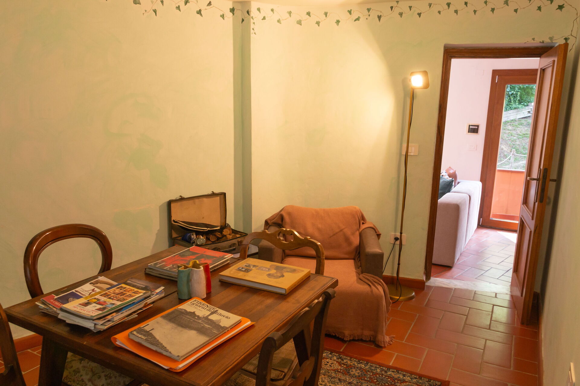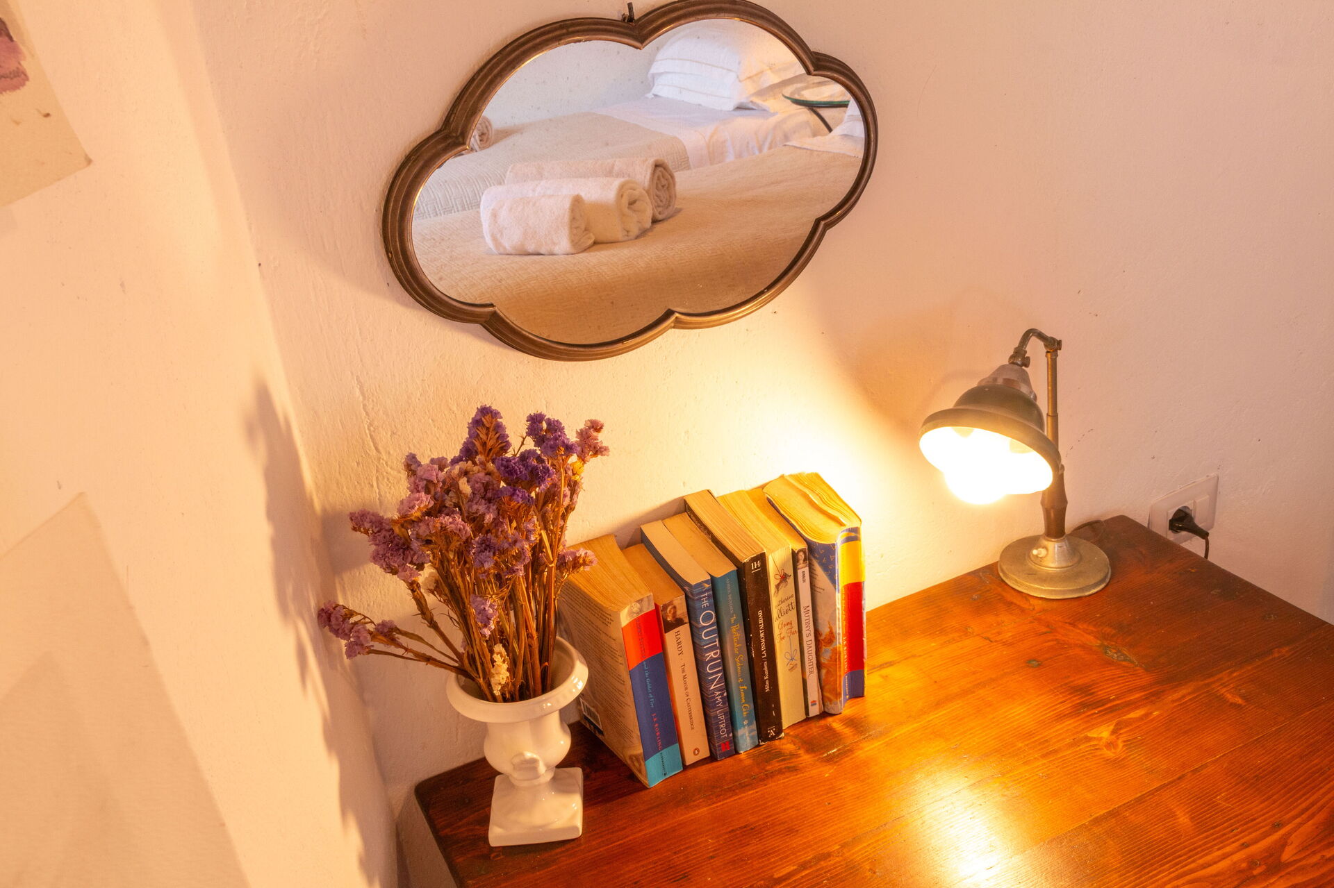 On the first floor you get to the corridor with a big desk if you have some emails to check. From the corridor you can get to the three bedrooms and bathrooms (two double, one twin beds). There is also a wooden staircase to the second floor where we have made a reading area with two twin sofas and an authentic home theater with 2 rows of REAL vintage red velvet seats: You can watch your favorite programs on a cinema screen!