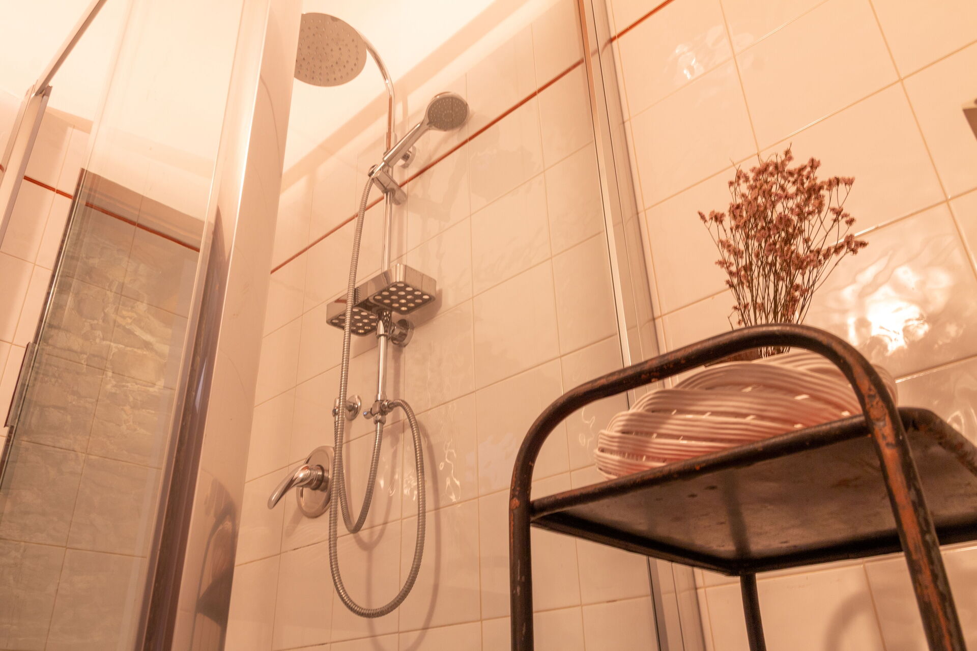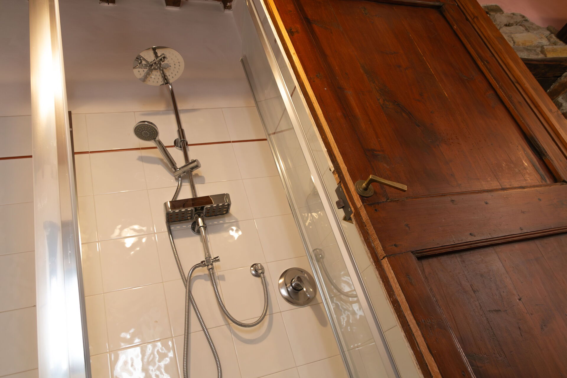Ci sono due bagni con doccia, uno al piano terra l'altro al primo piano.