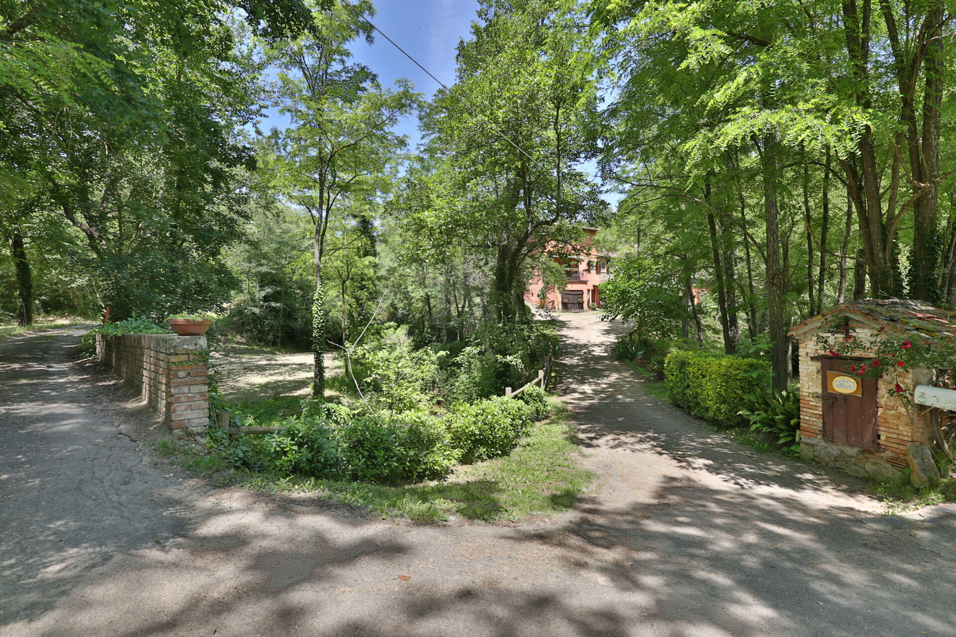 L'intera proprietà è composta dal Podere e si estende per circa 8 ettari di campi e boschi di querce. La strada di accesso alla proprietà prosegue oltre il piccolo ponte fino alla fine del suo percorso verso le case dell'antico Mulino del Doccio.