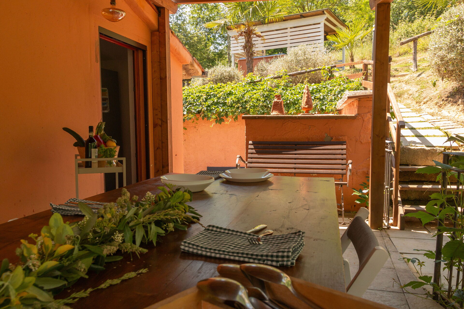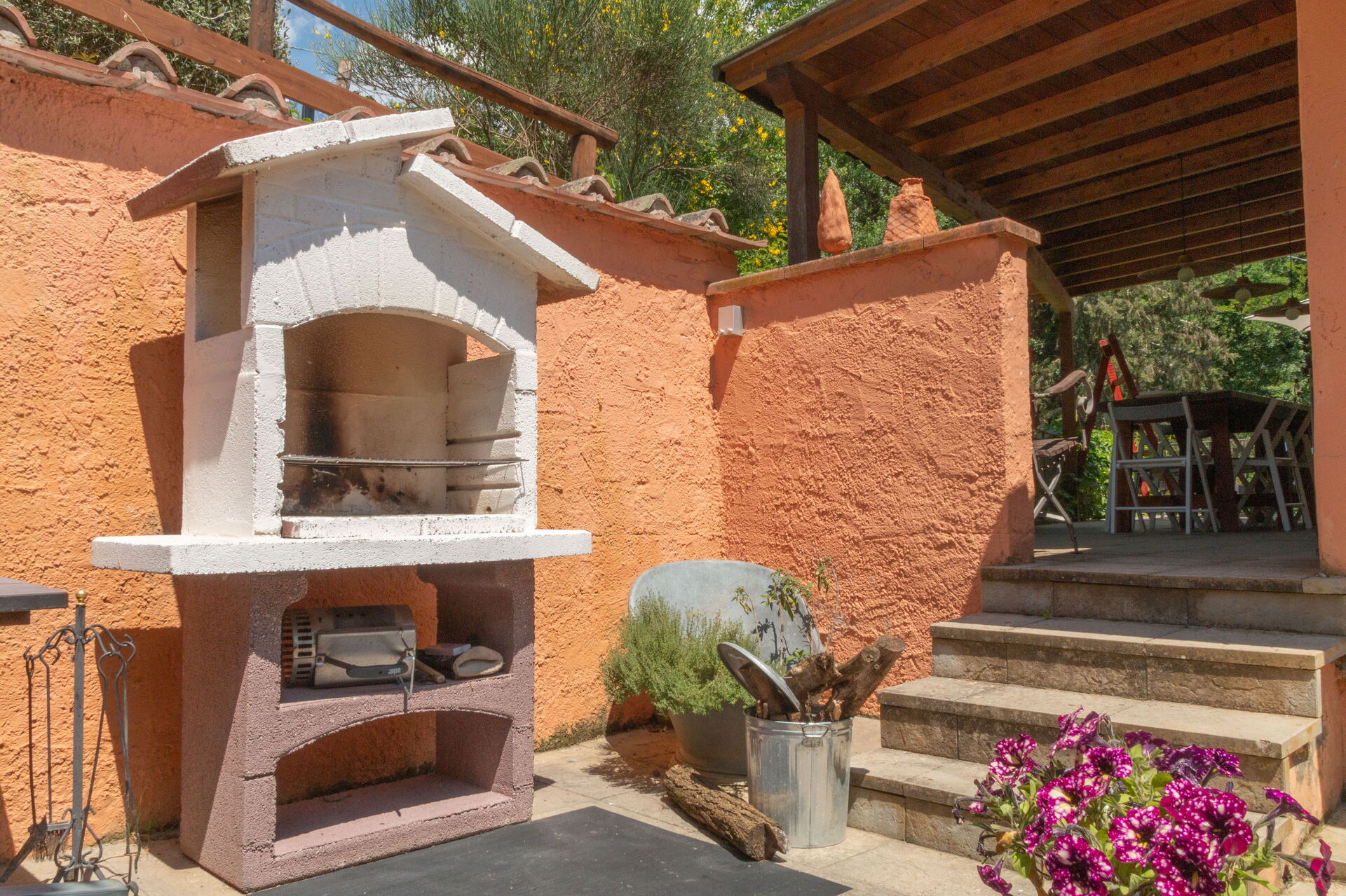 Un BBQ con erbe aromatiche è situato a lato della colonica.