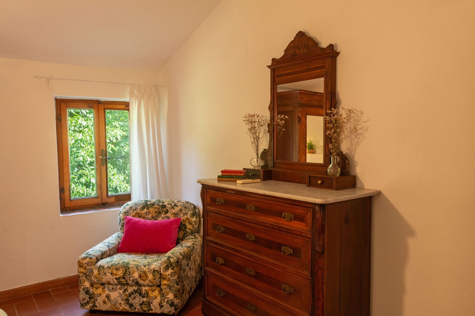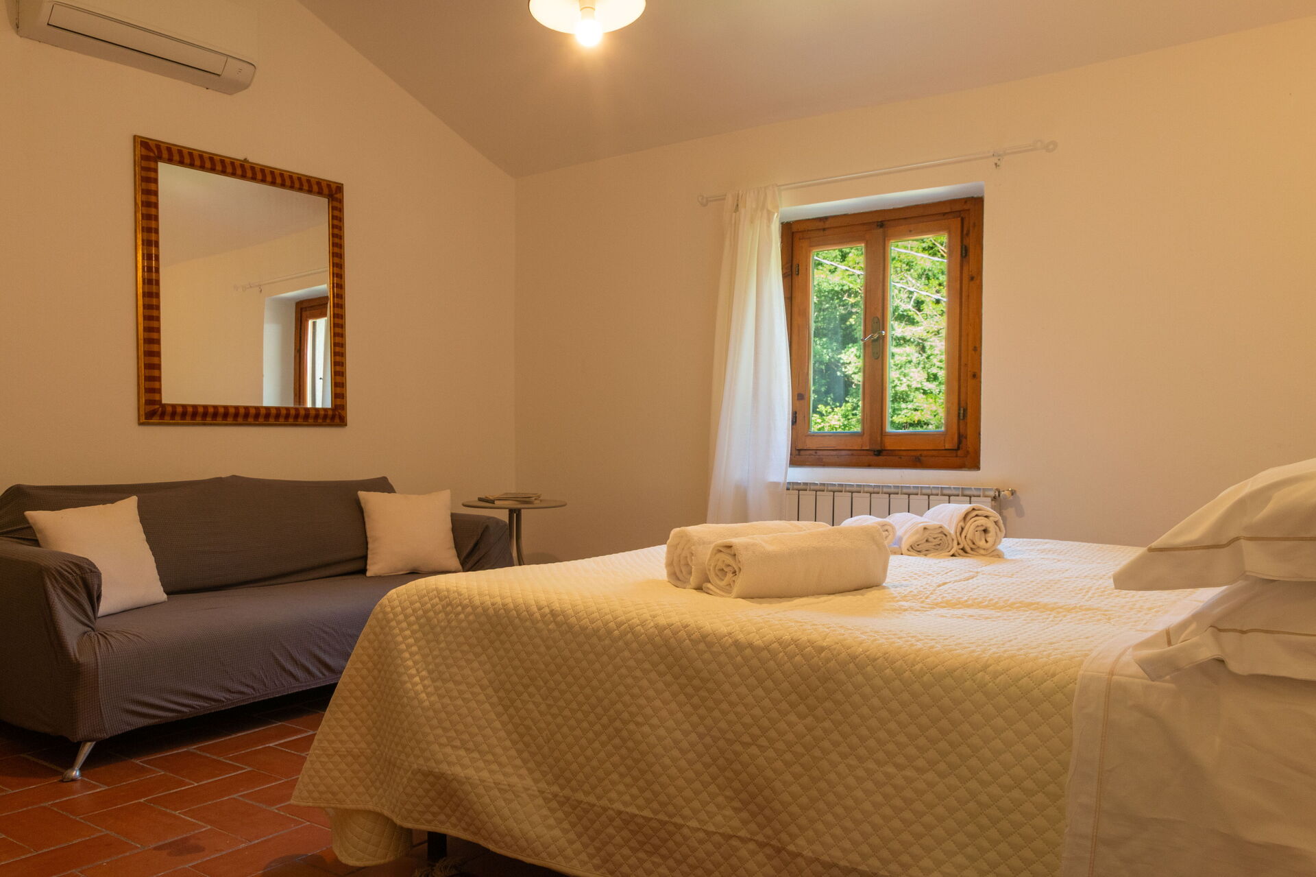 Un'antica casa colonica, ristrutturata negli anni '90 con un totale di 5 camere e 5 bagni con doccia (2x camera matrimoniale con bagno privato, 2x camera matrimoniale, 1x camera doppia + 3 bagni completi);